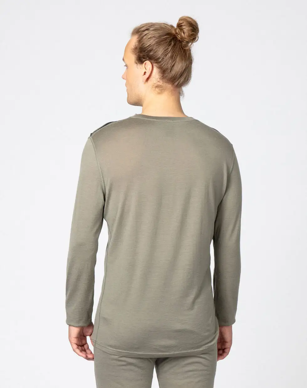 Bula Aztec Merino Wool Crew er et langærmet uldblandingsbundlag med kun naturlige fibre. Uld holder dig varm i både tør og våd tilstand og har god åndbarhed. TENCEL™ Lyocell-fibre er certificeret som biologisk nedbrydelige og har en meget blød kvalitet og absorberer fugt godt. Flade, elastiske sømme forhindrer gnidninger, og raglanærmer sikrer bedre bevægelsesfrihed.
