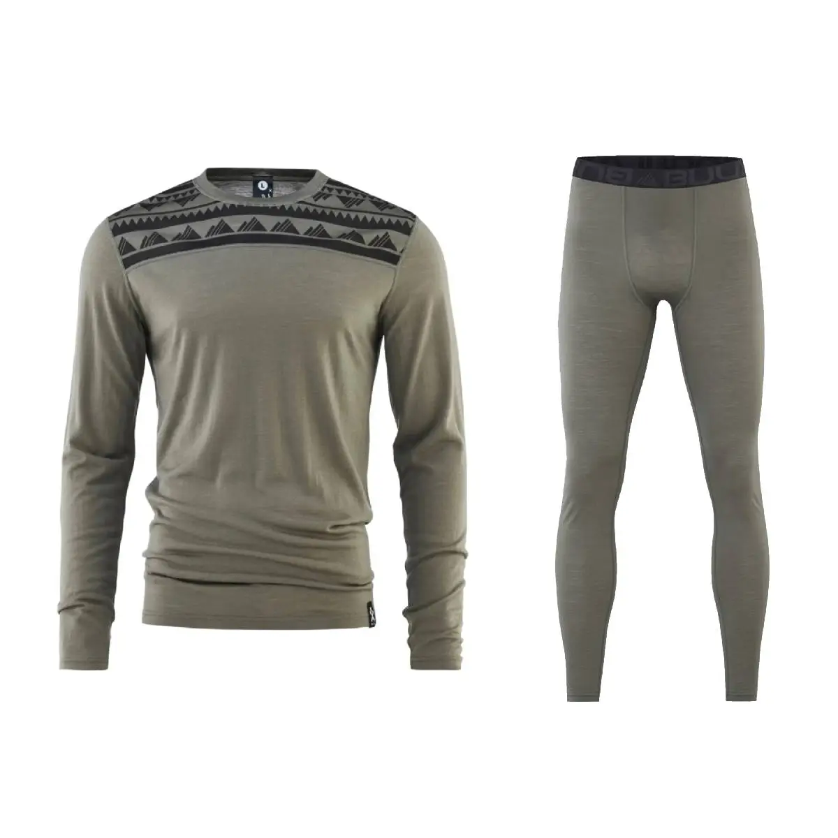 Dette varme sæt skiundertøj fra Bula til herrer består af skiundertrøje og lange skiunderbukser: