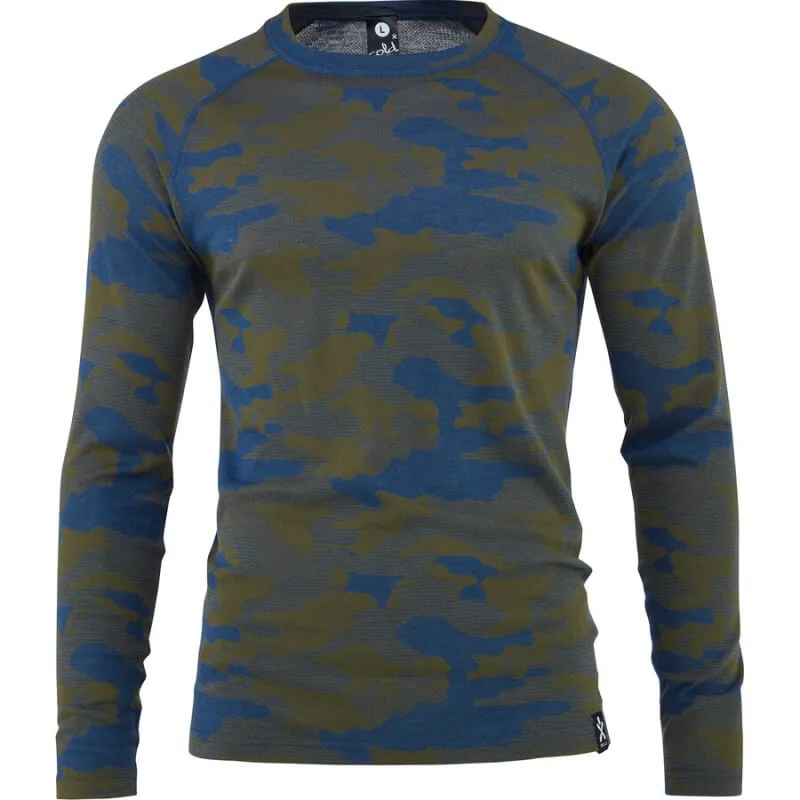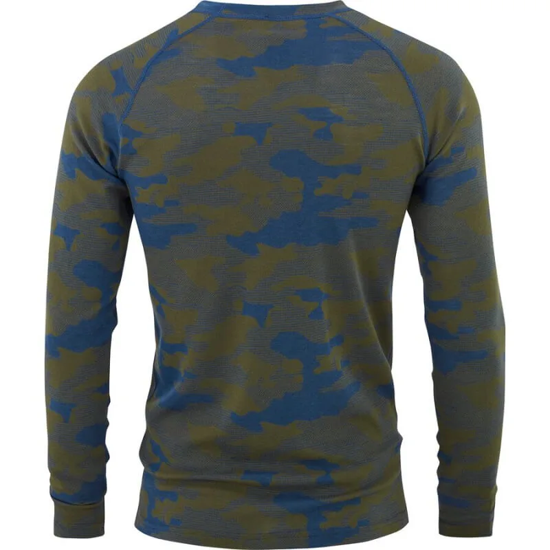 Camo Merino Wool Crew fra Bula er lavet i en blanding af 50 % merinould og 50 % polyester med fedt mønster på. Camo sørger for du kan holde varme, men sørger også for at holde dig tør, så fugt og sved ikke gør dig kold. Dette er det perfekte baselayer til fysisk aktivitet eller hvis du mangler ekstra varme i hverdagen.