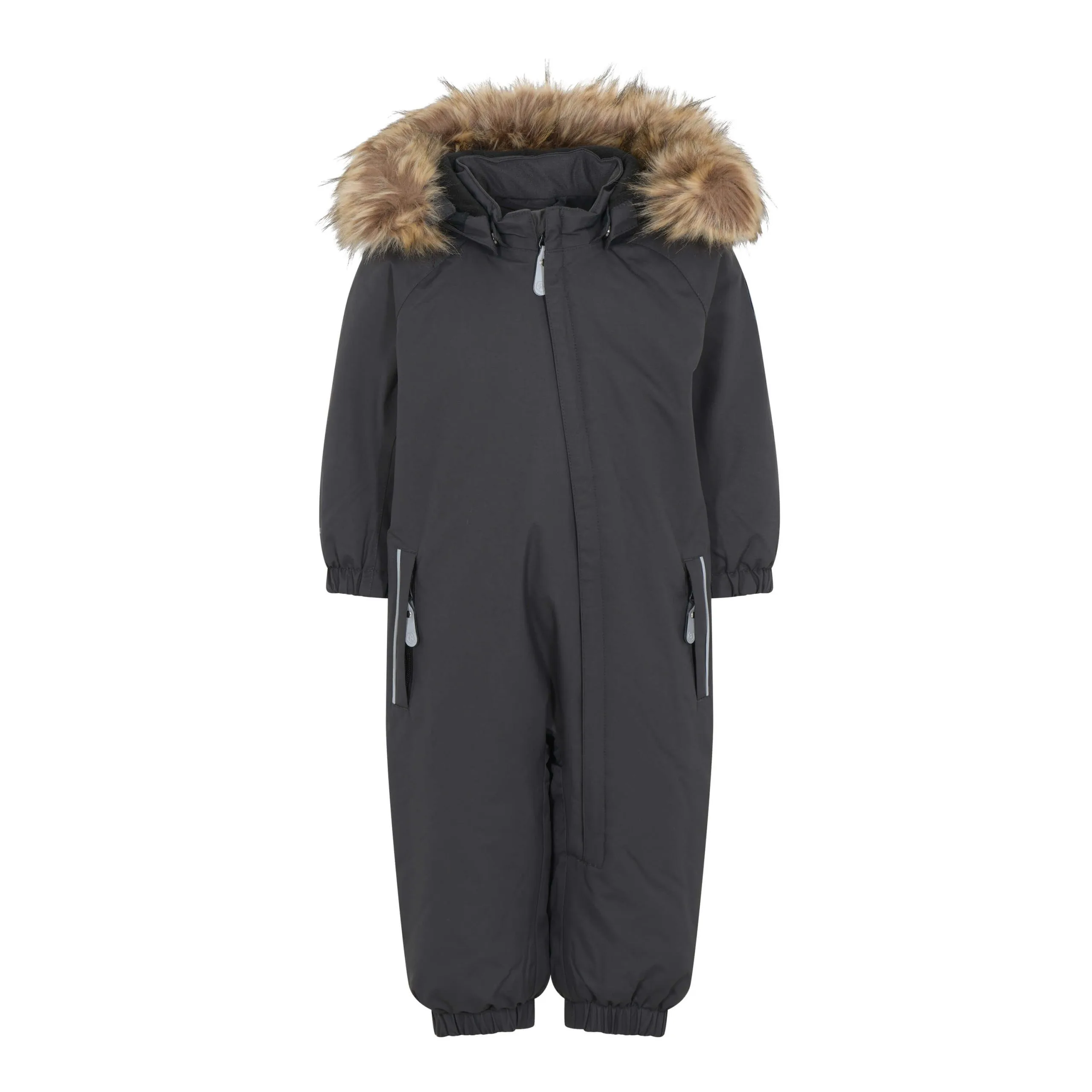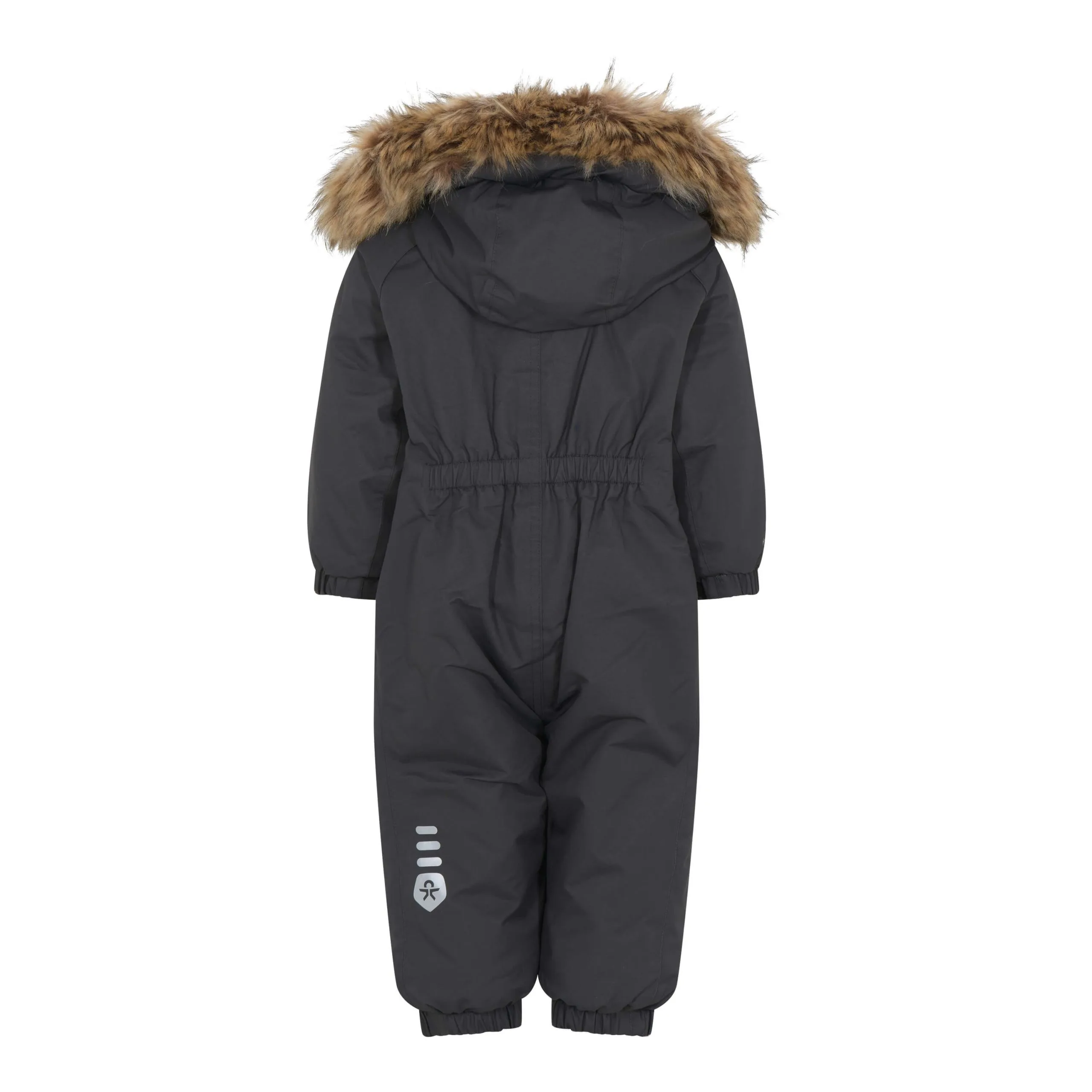 Color Kids flyverdragten er med elastik ved hænder og fødder, så den kan trækkes udover vanterne og støvlerne. Hætten har fleece inde i og er med en plys kant, som kan tages af. Color kids flyvedragten er lækker og varm, den er vindtæt, vandtæt og åndbar og meget nem at komme i og bevæge sig rundt i.