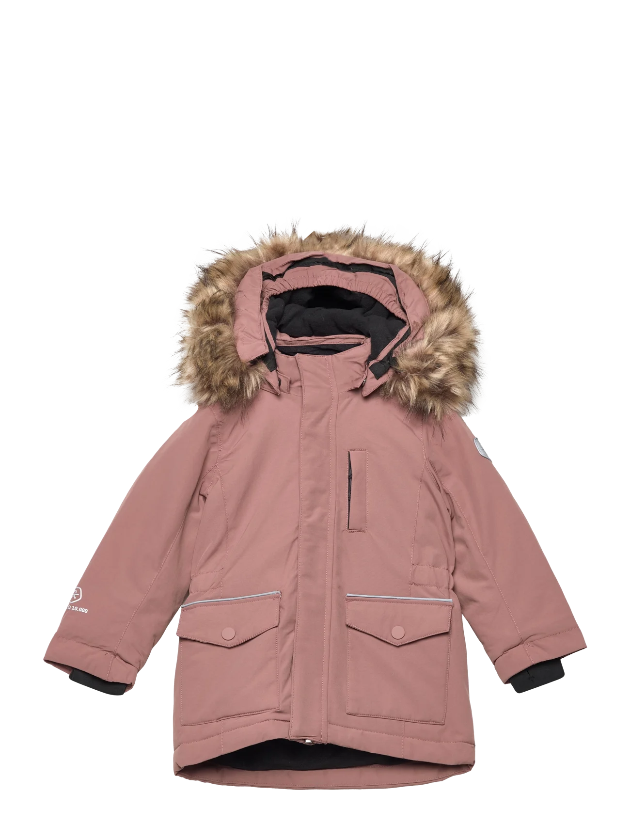 Smuk parkajakke med pigeform og elastisk linning. Parkaen har en aftagelig hætte med fleecefor og blød, aftagelig imiteret pels. Hætten har også et elastikbånd omkring ansigtet. Parkajakken har praktiske detaljer såsom store frontlommer med trykknapper. på ærmerne med tommelfingerhuller. Belagt med organisk og fluorfri BIONIC-FINISH® ECO. Parkajakken er desuden karakteristisk smudsafvisende. Flere reflekterende detaljer på parkaen. Tapede sømme, vindtæt, åndbar og med et vandtryk på 10.000 mm. Fås i drenge- og pigefarver.