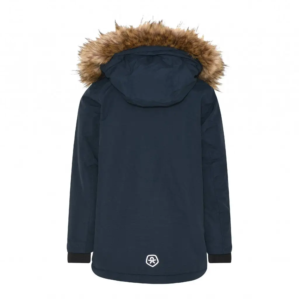 Fed parkajakke med aftagelig hætte med fleecefor og blød aftagelig imiteret pels. Hætten har desuden elastik omkring ansigtet for at sikre en god pasform. Parkaen har praktiske detaljer som store frontlommer med print, to brystlommer til liftkort eller buscard og snesyede ærmemanchetter med tommelfingerhul. Belagt med organisk og fluorfri BIONIC-FINISH® ECO. Parkajakken er derfor også smudsafvisende. Flere reflekterende detaljer på parkaen. Tapede sømme, vindtæt, åndbar og med et vandsøjletryk på 10.000 mm. Fås i flotte farver.