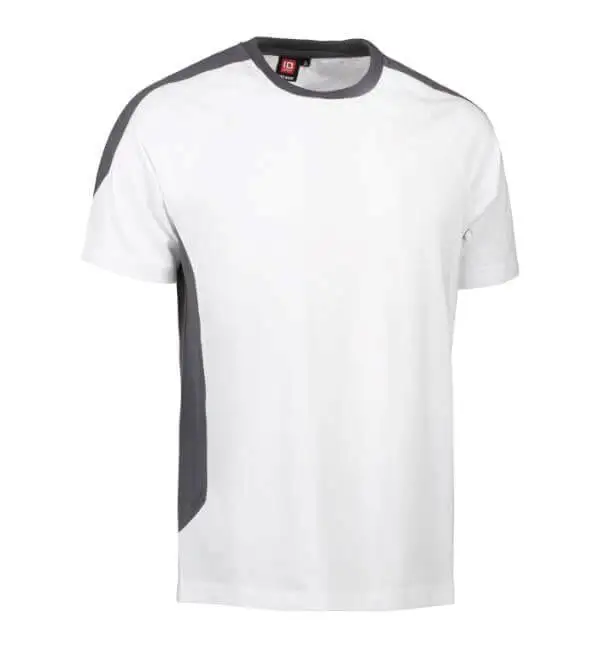 Ekstra slidstærk to-farvet T-shirt. Fire-lags halsrib, nakke- og skulderbånd og nakkespejl. T-shirten har gennemgået en forkrympningsproces ved meget høje temperaturer, både før og efter indfarvningen for ekstra stabilitet og lang levetid.