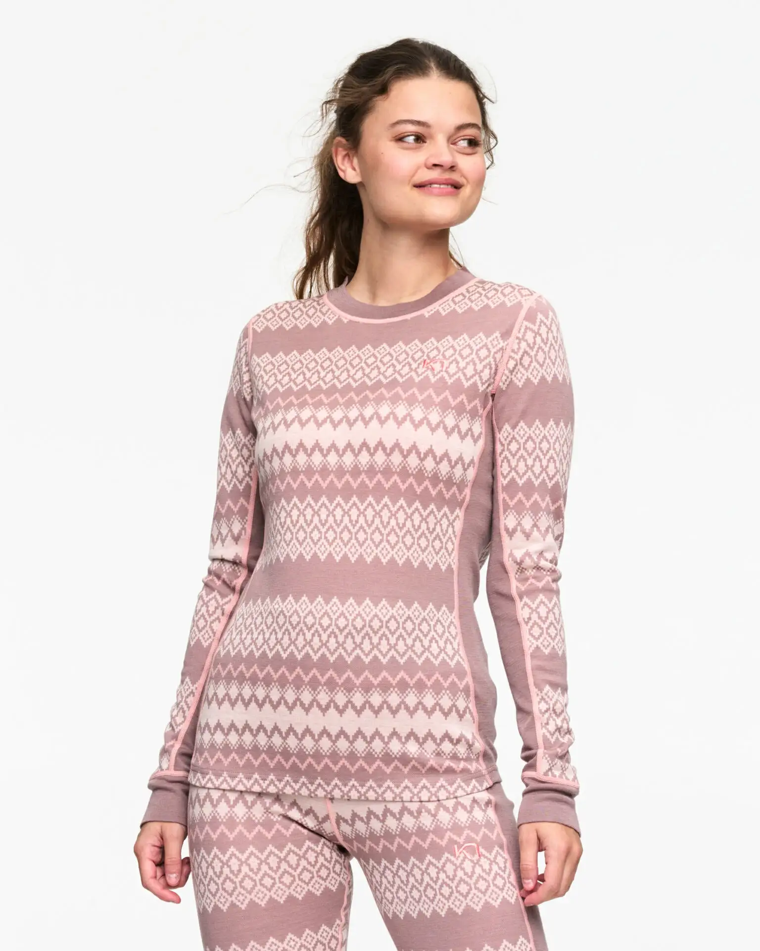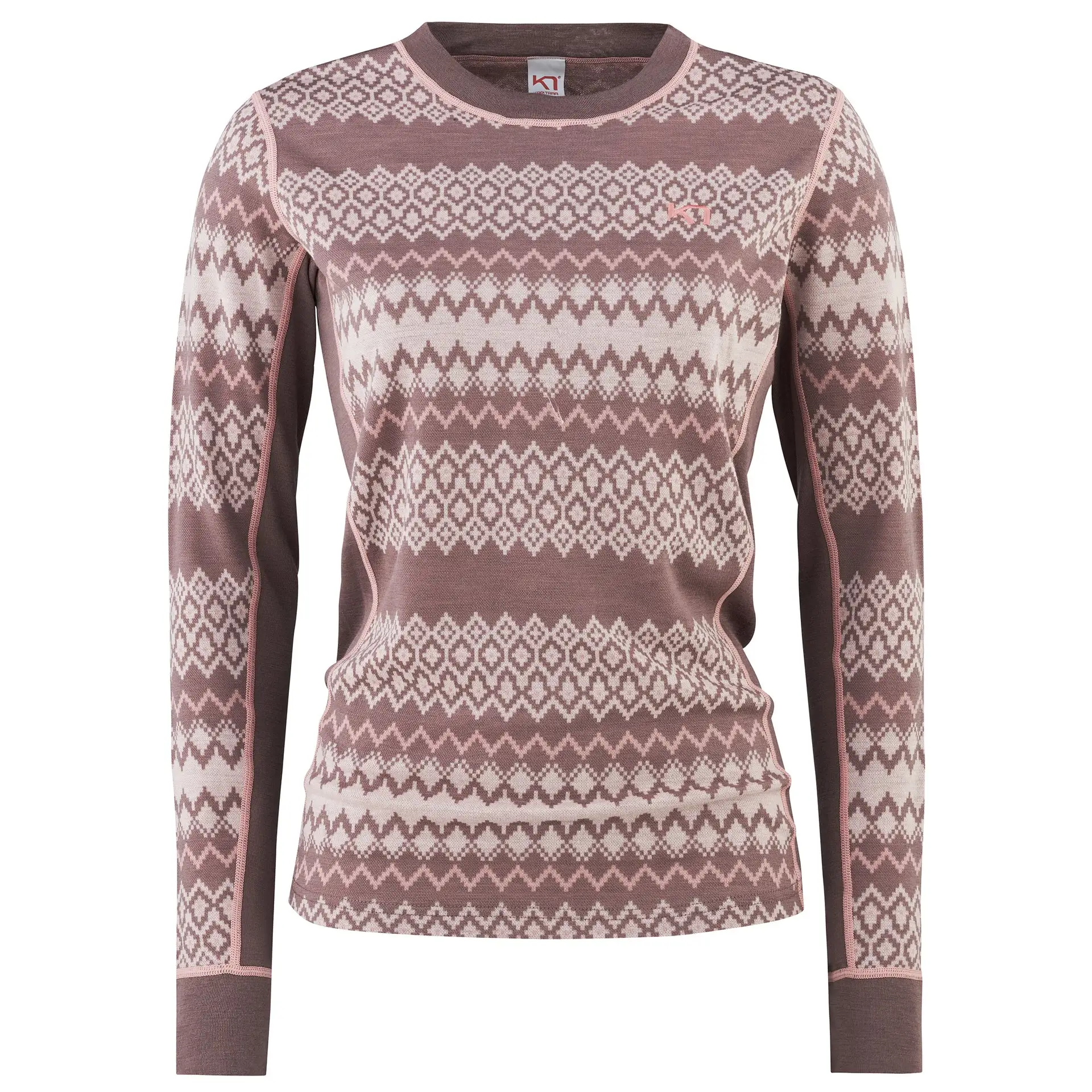 Kari Traa Agnes 2.0 Langærmet trøje er et basislag til kvinder i en naturlig blanding til at tage ud i naturen i nordisk inspireret Jacquard-strik. De naturlige stoffer føles fantastisk mod din hud og transporterer fugt væk, når du skruer op for intensiteten. Paneler under armene og et slankt snit gør den fantastisk til lag på lag-påklædning. Den er fremstillet af etisk fremskaffet merinould og træfibermodalstof, som vil holde din krop varm og din samvittighed ren.