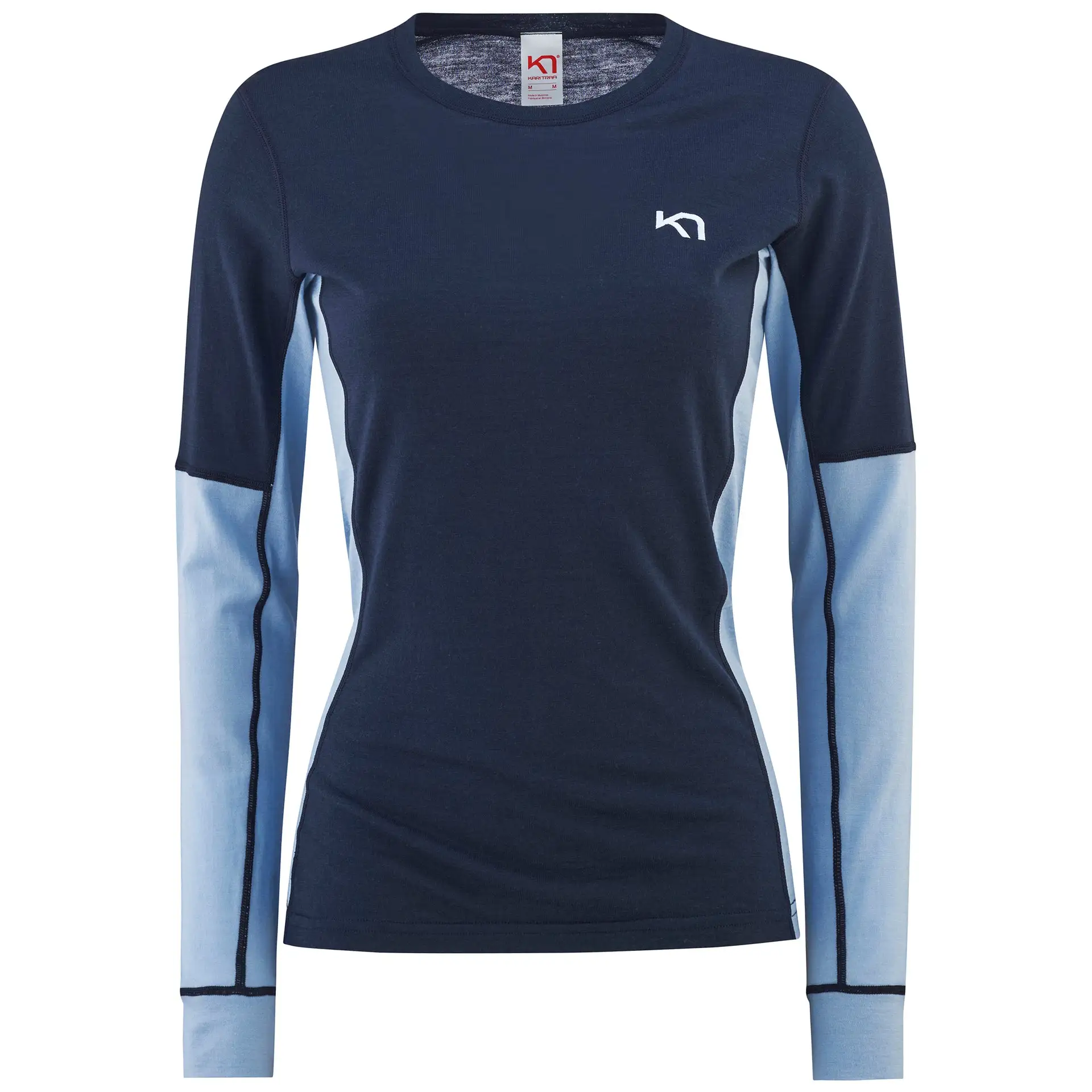 Kari Traa Elenore Longsleeve er et basislag i 100 % uld til kvinder, og den har striber i kontrastfarver for en sporty stil. De etisk indkøbte uldfibre giver dig en behagelig følelse direkte på huden, som du vil elske, og de er varme, åndbare og naturligt lugtbestandige. Paneler under armene og manchetærmeender forhindrer den i at glide op under andet tøj, og hvis du skruer op for intensiteten, vil flatlock-sømmene forhindre hudirritation.