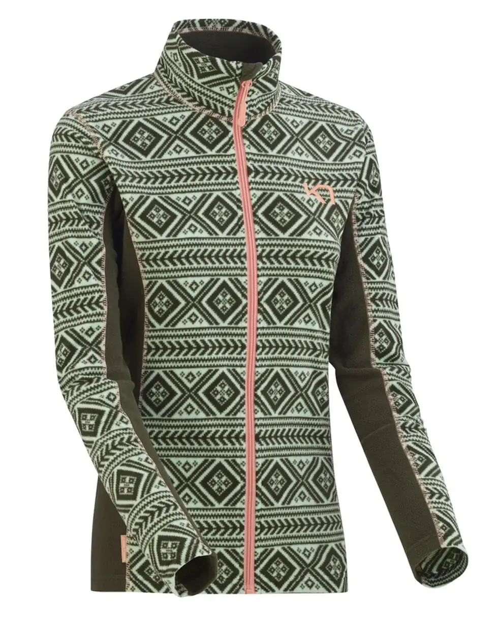 Kari Traa Flette Fleece brugt som 2. eller yderste lag giver en komfortabel varme under en lang række aktiviteter i køligt vejr. Fleecematerialet i høj kvalitet er hurtigtørrende med en blød, børstet indvendig side. Snittet er normalt, praktisk og sporty. Fuld lynlås i kontrastfarver og et originalt print, som inspirerer til individualitet.