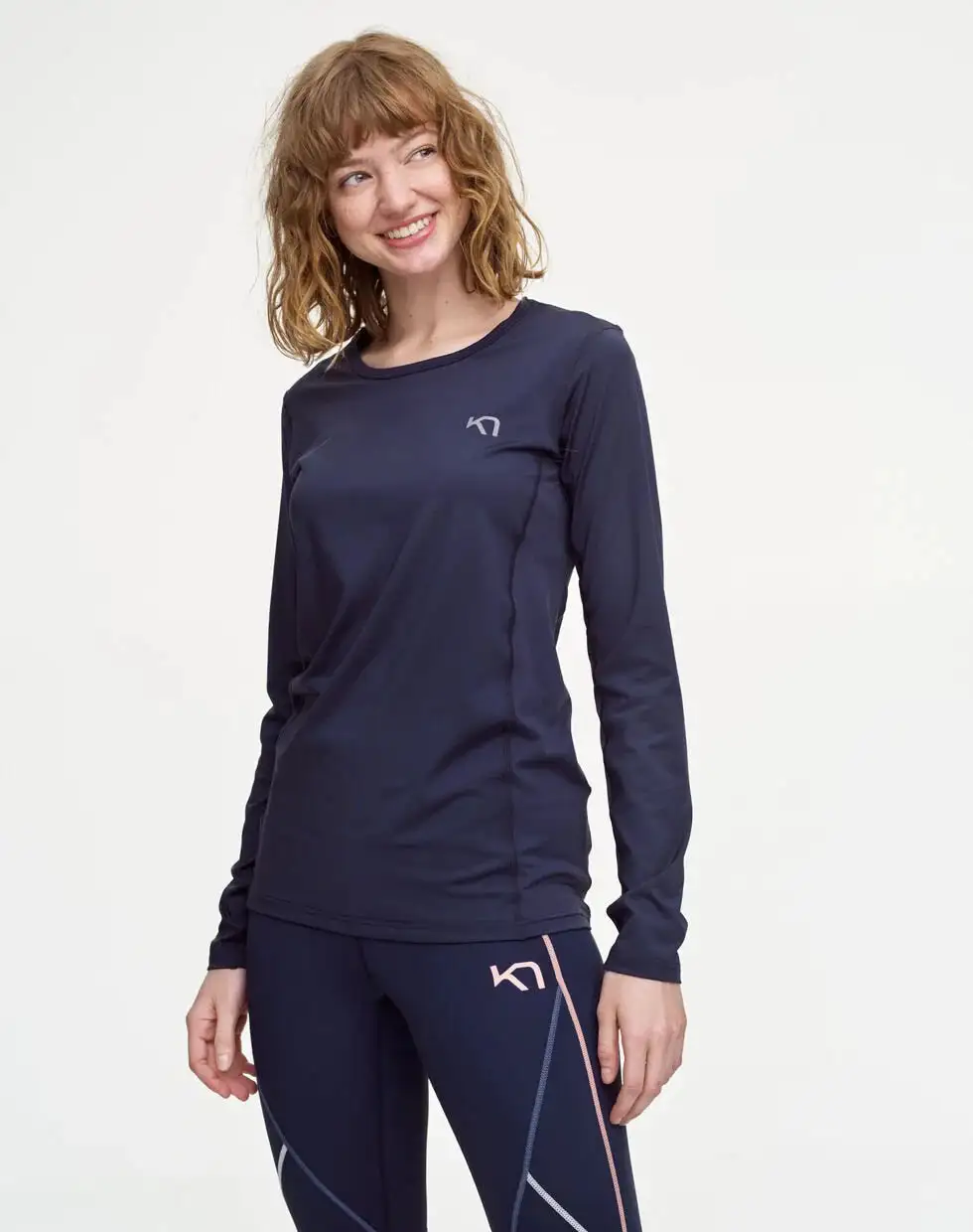 Kari Traa Nora Langærmet top er en klassisk træningstop til kvinder. Det afslappede snit og den runde hals giver den et afslappet look, mens det hurtigtørrende stretchstof og flatlock-sømmene hjælper dig gennem intense træningsprogrammer. Underarmspanelet i et netstykke giver fremragende ventilation og øger bevægelsesfriheden. Den kommer i smukke kombinerbare farver med reflekterende detaljer til aftensessioner udendørs.