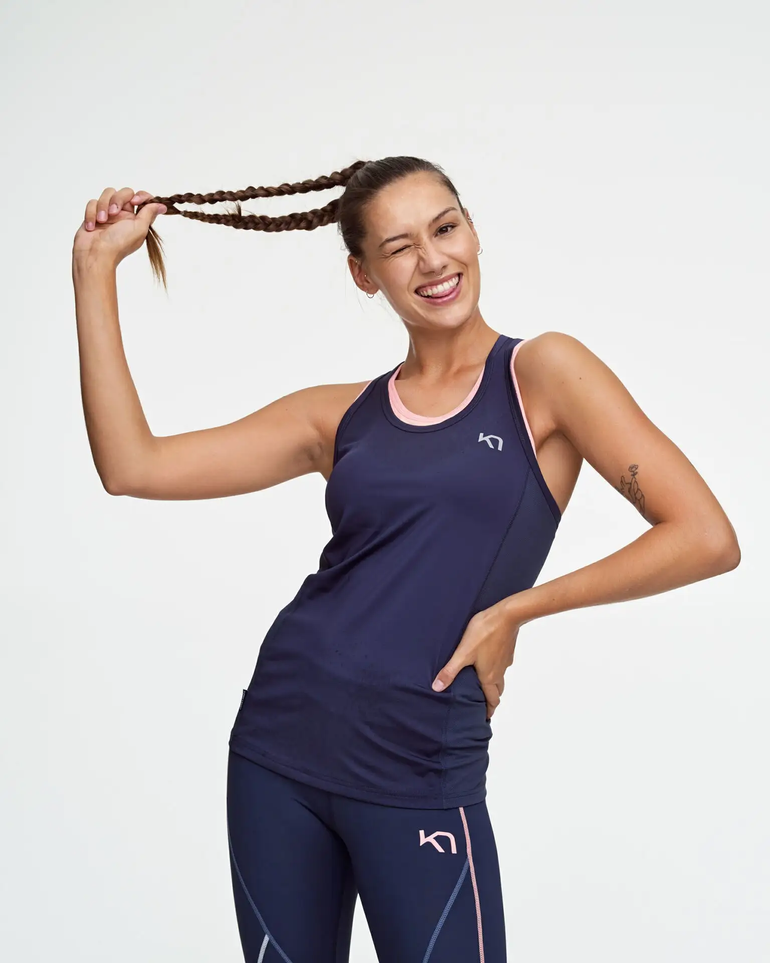 Kari Traa Nora Singlet er en klassisk træningstanktop. Den er designet så det er let og elegant. Det hurtigtørrende elastiske stof og flatlock-sømmene betyder, at du kan give den hele armen om det er til holdtræning, på løbeturen eller i motionscentret. Bryderryggen og netpanelet giver dig god ventilation og større bevægelighed.