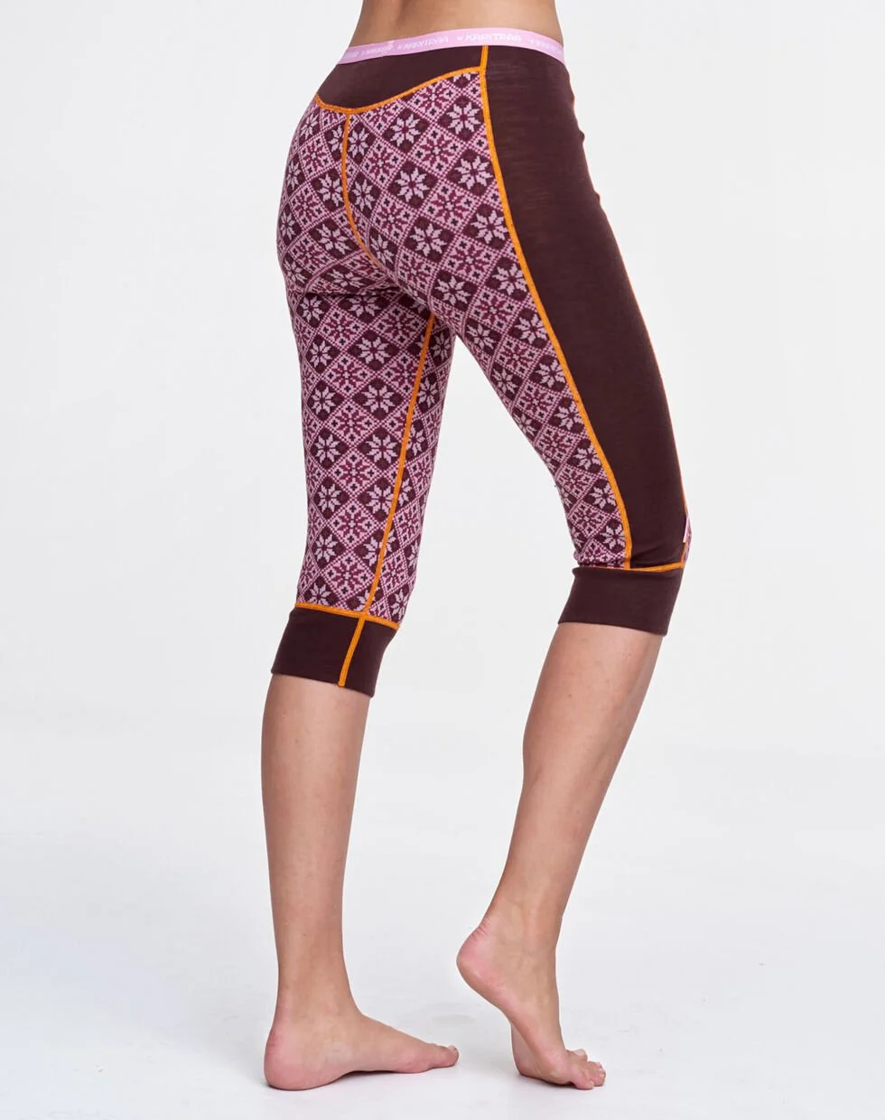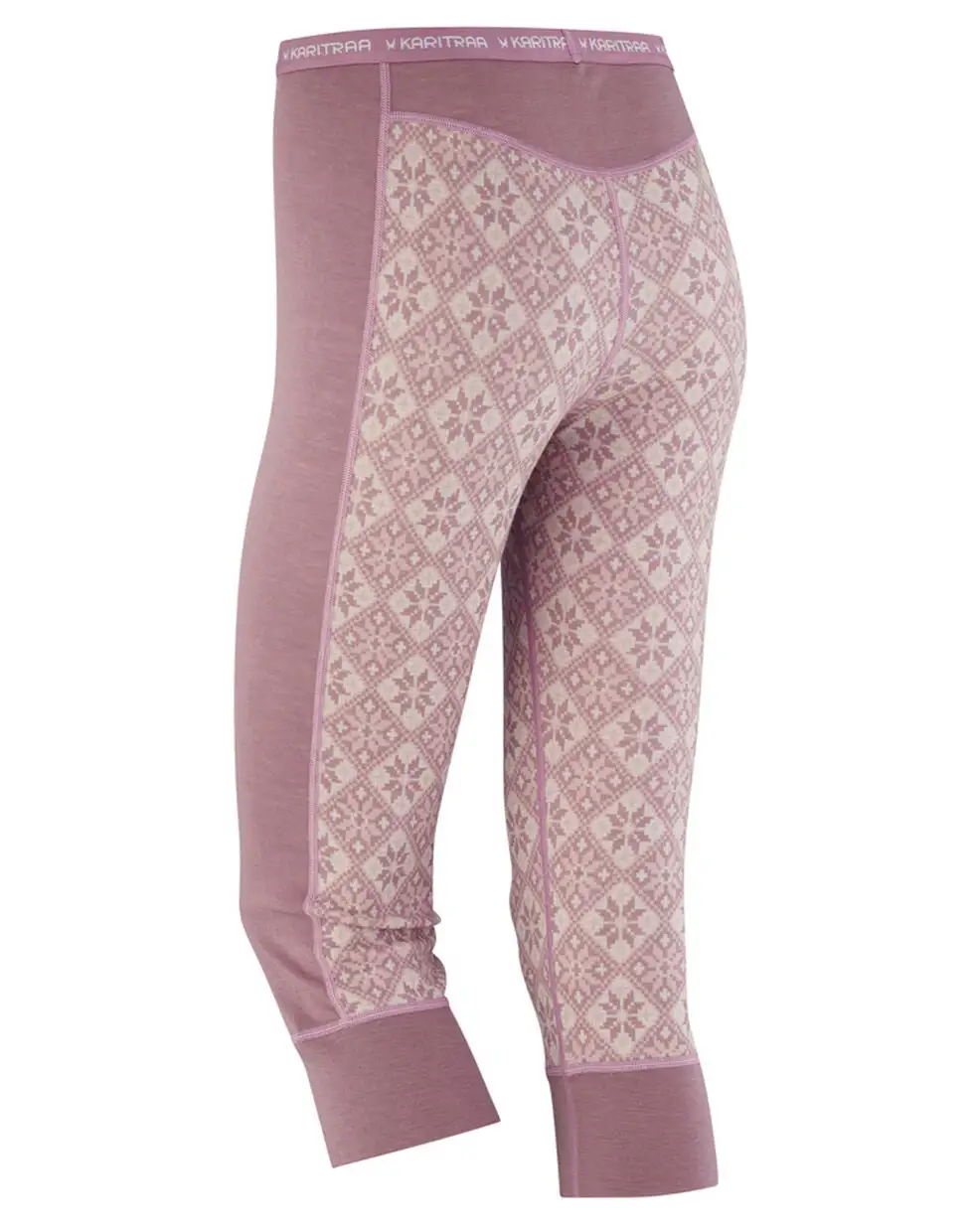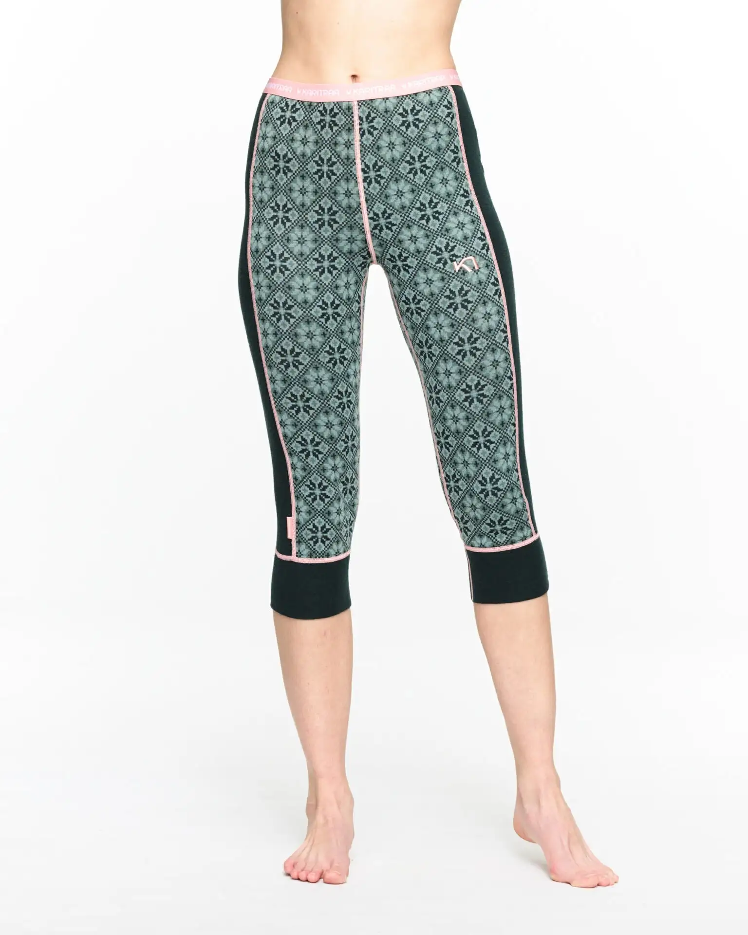 Kari Traa Rose Capri er ¾ basis leggings i 100% merinould til kvinder, med et elegant, feminint og nordisk-inspireret look samt en tætsiddende silhuet.