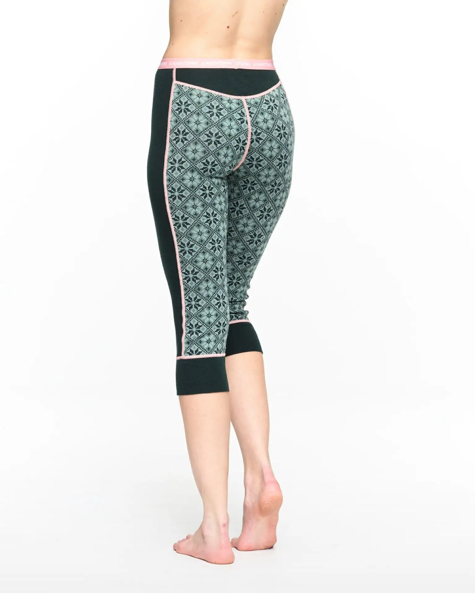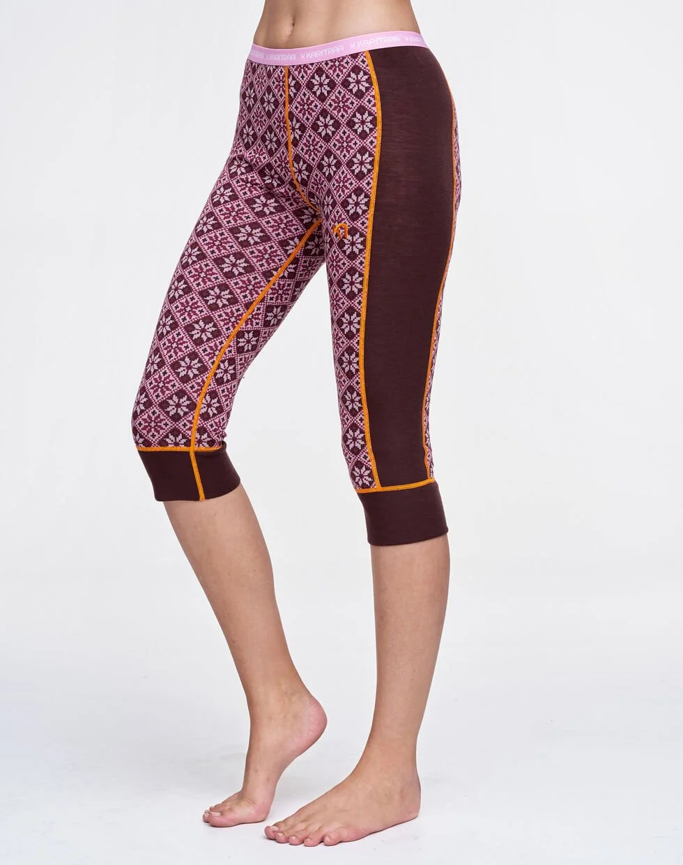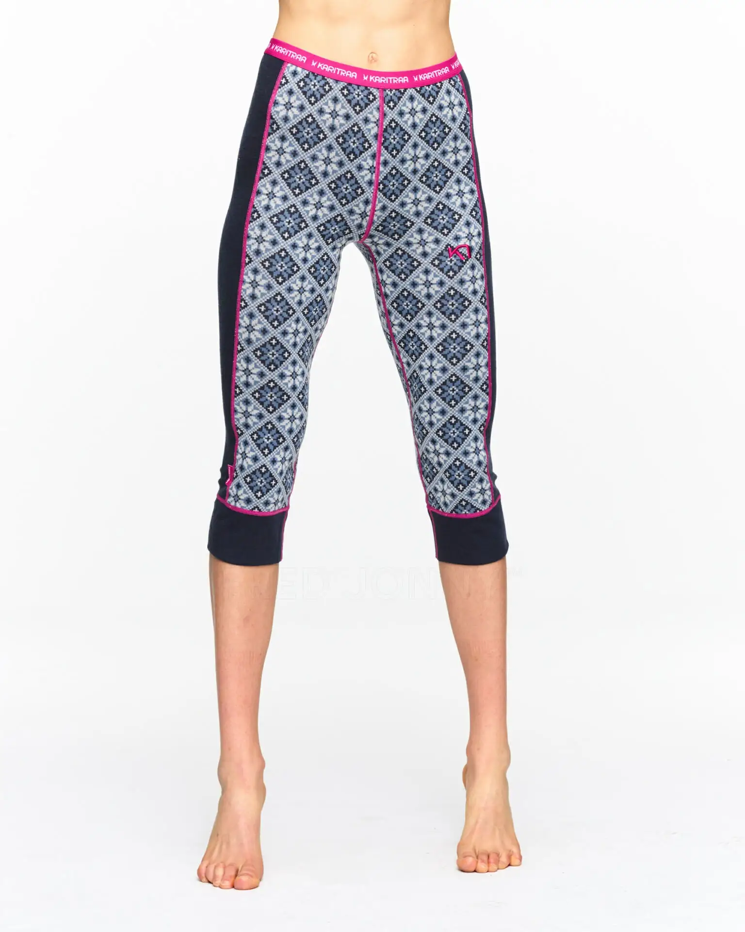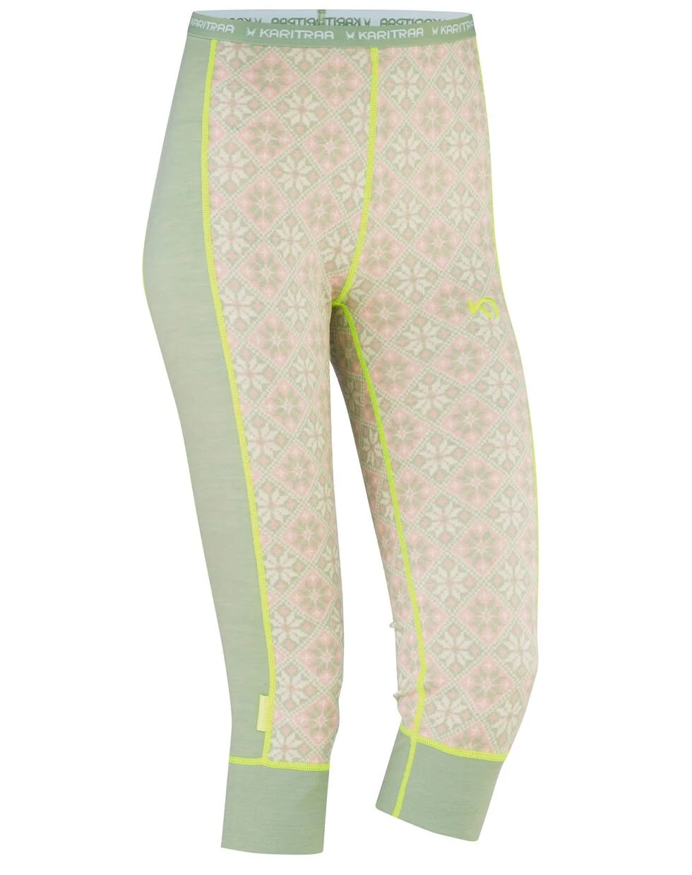 Kari Traa Rose Capri er ¾ basis leggings i 100% merinould til kvinder, med et elegant, feminint og nordisk-inspireret look samt en tætsiddende silhuet.