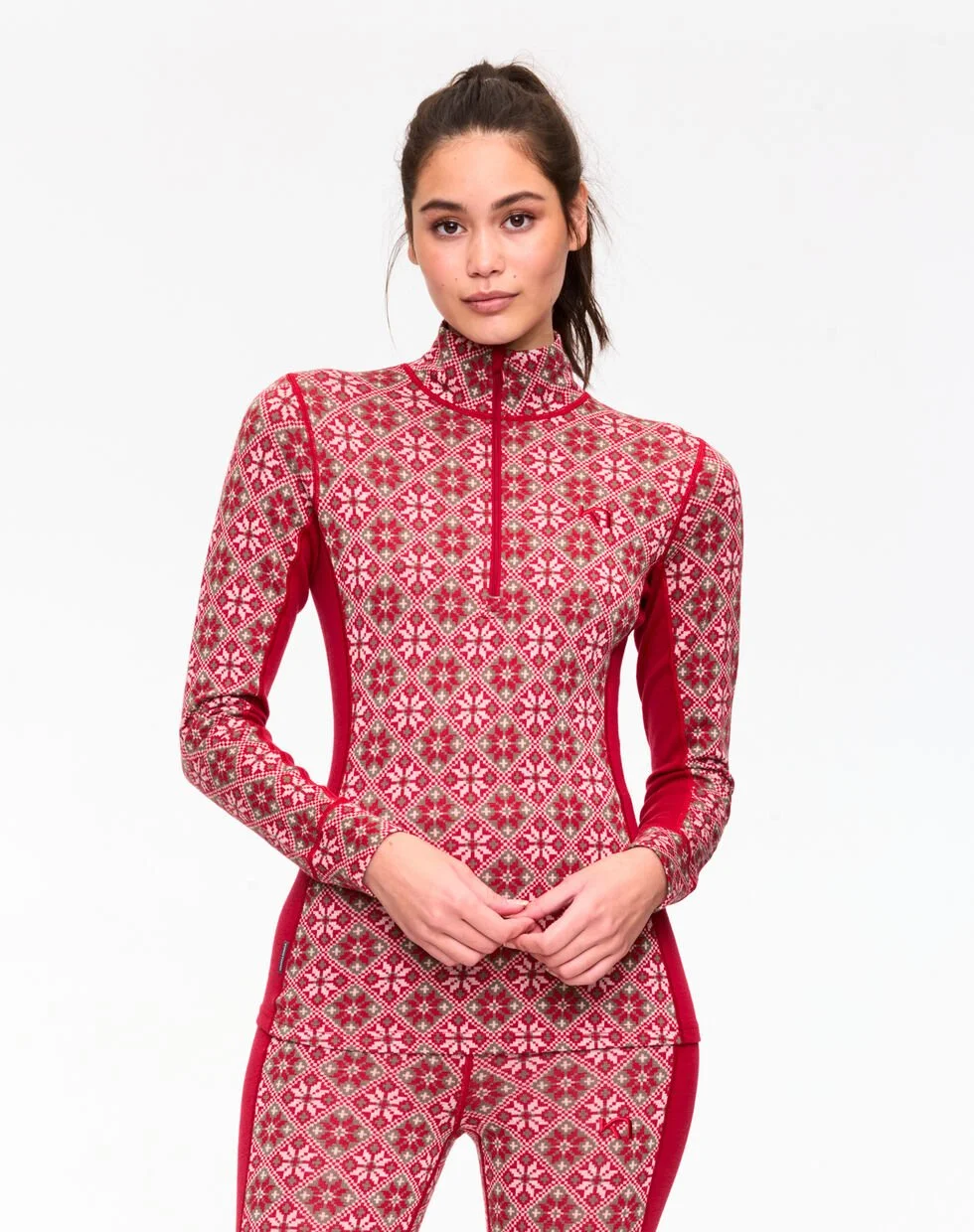 Så hvis du vil have en pålidelig, varm og komfortabel basislagtop til dine udendørs eventyr, så er Rose Half-Zip Basislagtoppen fra Kari Traa det perfekte valg.
