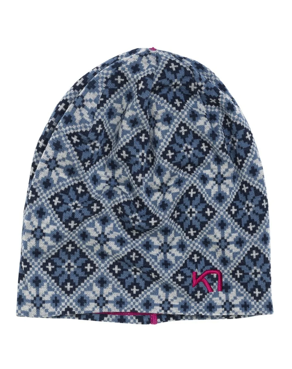Kari Traa Rose Hue er en tyk, varm hue i 100 % superfin merinould til kvinder, og den er jacquardstrikket, så den bevarer faconen over tid. Uldfibrene holder dig varm, uanset om de er våde eller tørre, og de er naturligt åndbare og lugtfri.