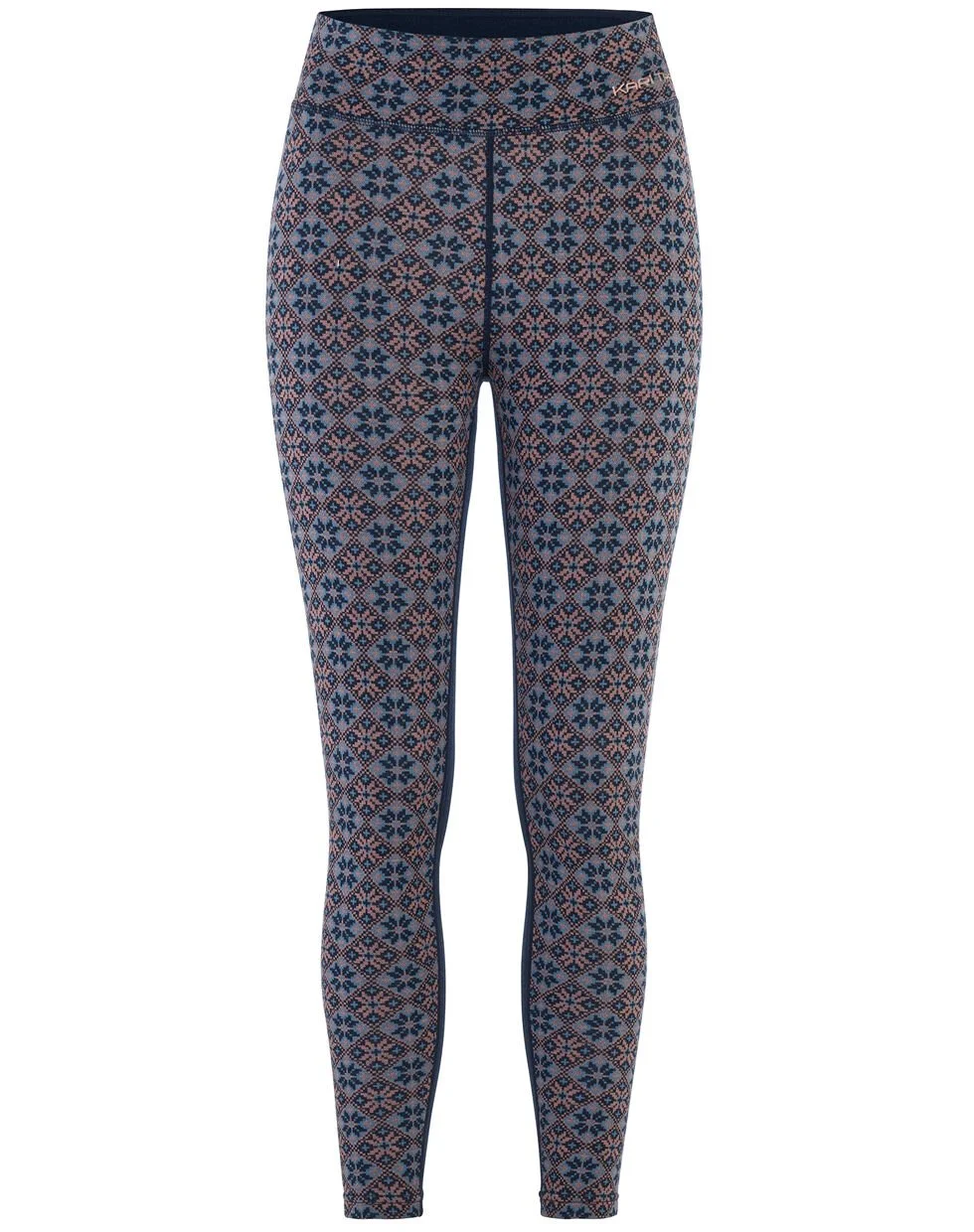 Kari Traa Rose Light Bukser er et superblødt og glat par etisk fremskaffede leggings i merinould i fuld længde med et snekrystalmotiv til kvinder. Disse bukser er slanke, med ergonomiske linjer, og vil med sikkerhed smigre enhver krop. Flatlock-sømme giver bevægelsesfrihed, mens en blød linning og høj talje gør, at du kan være dig selv uanset hvilket eventyr, du er på. De er perfekte til vandreture og vil passe fint som et basislag til alpint skiløb om vinteren. OEKO-TEX® 100-certificering betyder, at materialerne ikke er til skade for menneskers helbred.