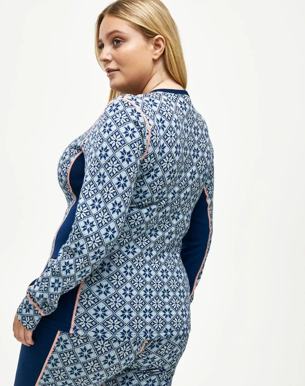 Kari Traa Rose plus size skiundertøj er en klassiker i den skandinaviske vinter. Det er et basislag, der yder maksimal varme og er perfekt som et af flere lag på kolde dage. Rose Hood LS har et klassisk feminint design og er fremstillet af superfin 100 procent Merinould med 4-vejsstretch. Den føles vidunderligt blød mod huden, er åndbar og naturligt lugtforebyggende. Tyndere sidepaneler under armene og en flot knaplukning foran sikrer øget åndbarhed. Et “obligatorisk” basislag.