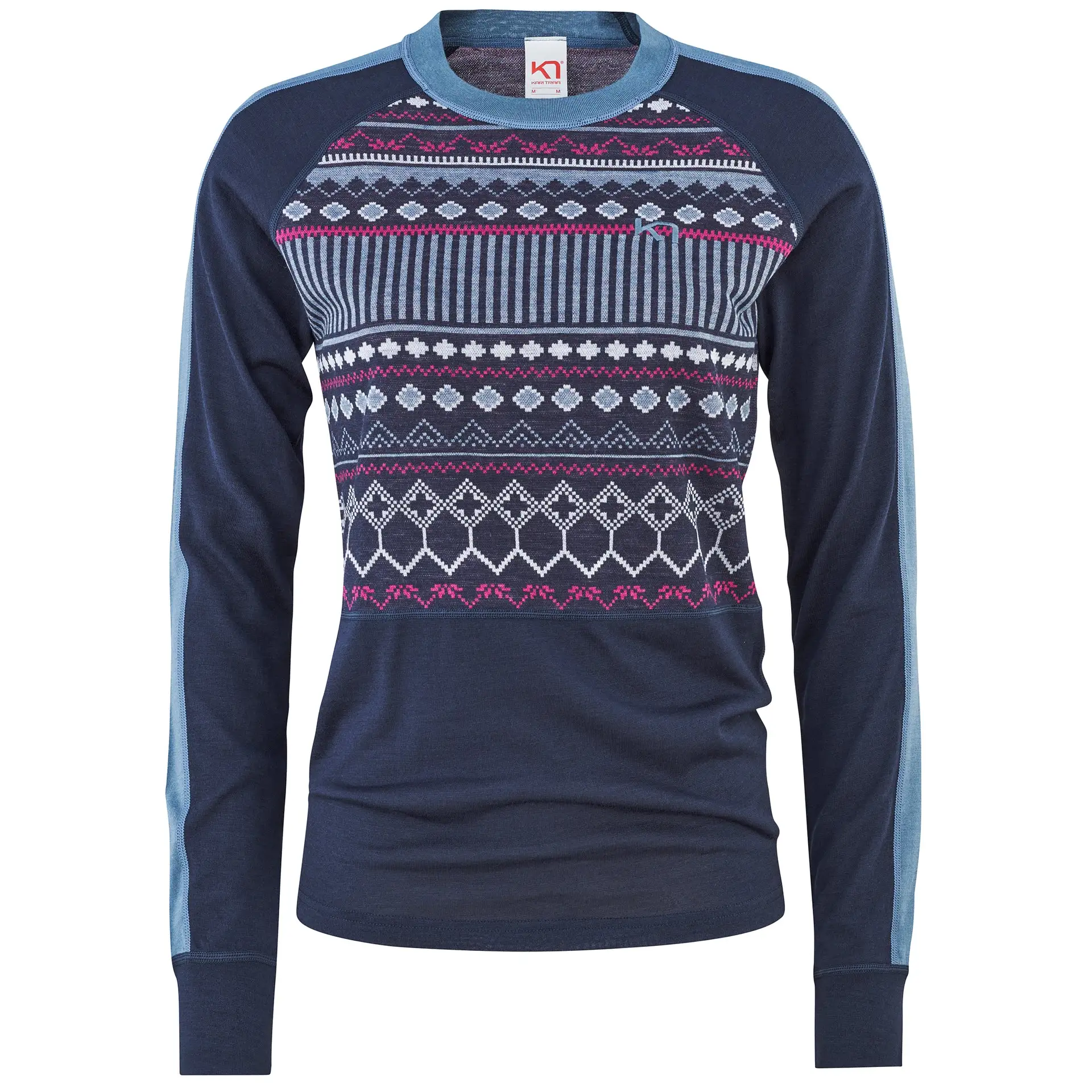 Kari Traa Tuva Langærmet trøje er en afslappet dametop i slim fit, der er idéel til lag på lag. Raglanærmerne og manchetafslutningerne stopper for,at de ruller op, når du har den på sammen med en jakke. Den runde hals, stribedetaljen og farveblokken smigrer brystet, mens diamantem og de sarte linjer viser den skandinaviske stil. Den er fremstillet ved hjælp af superblød letvægts træfibermodal og etisk fremskaffet merinould, og du vil elske den måde, det Jacquard-strikkede stof føles mod din hud.