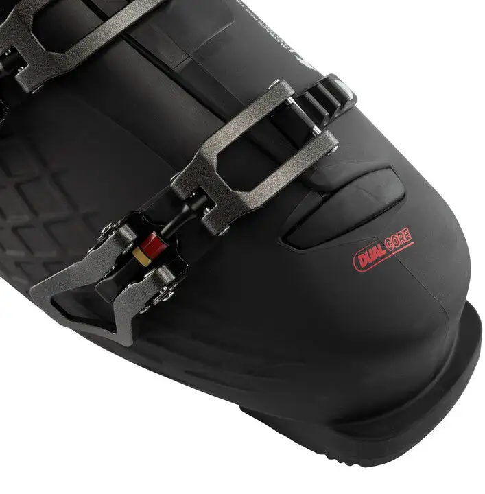 Spænder: 4-spænder i 100 % aluminium med diagonal justering, spænder på skaft flytbare. Spænder på skaftet har “Quickset” Lukkebeslaget på det øverste spænde kan indstilles til en af 3 positioner uden behov for et værktøj. Du skal bare trykke på og skubbe. Spænderne er placeret i en traditionel diagonal. For optimal hæl sikkerhed er de flyttet til en mere effektiv placering. Konstruktionen er 100% aluminium.