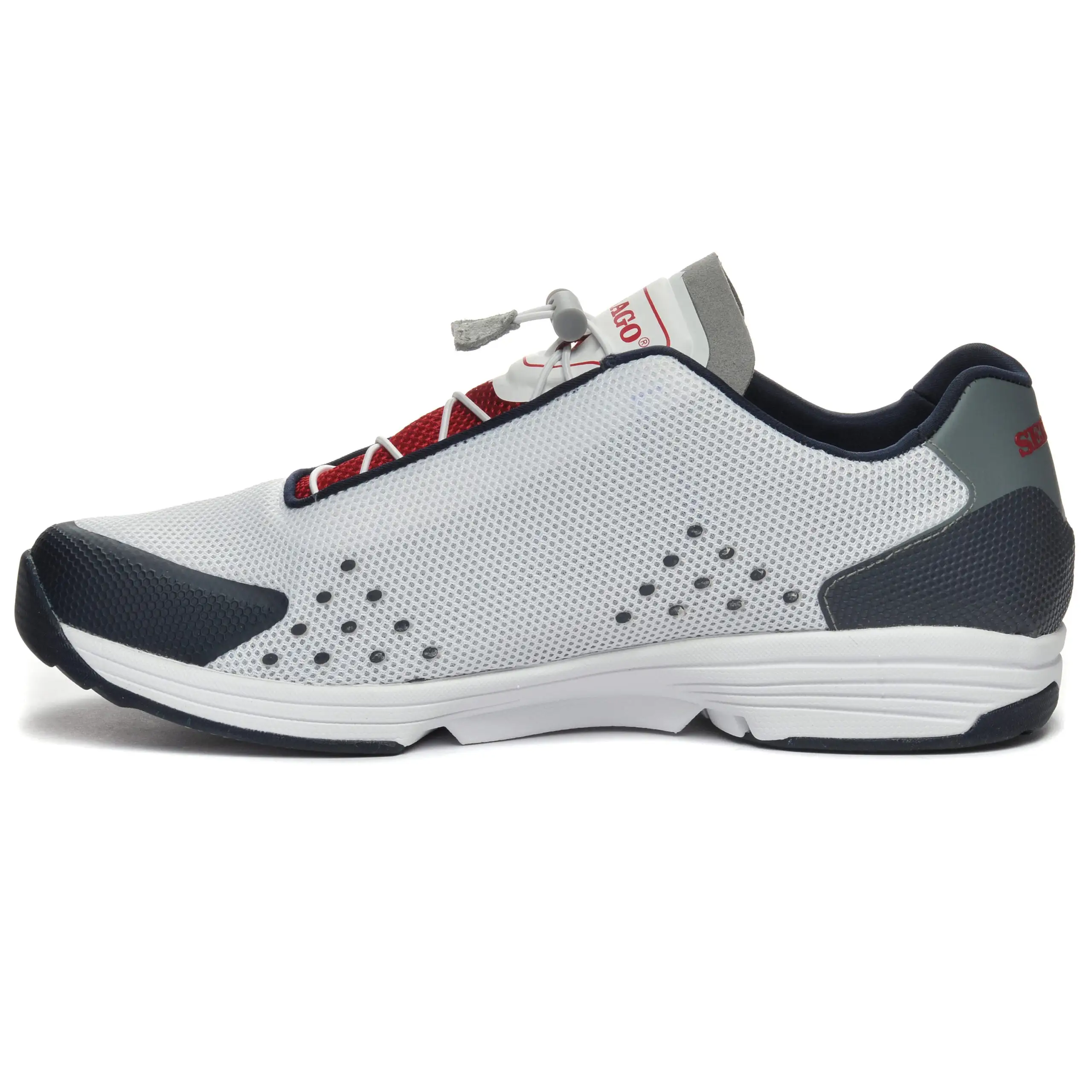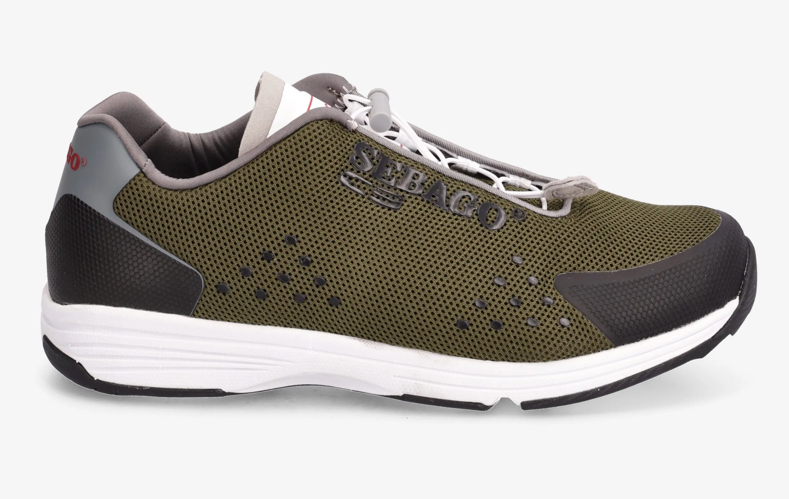 Denne højteknologiske sneaker er udviklet som en behagelig præstationssko til padder og lancerer Sebago-sejladsarven i fremtiden: den har fleksibel og holdbar Strobel-konstruktion, åndbar lettørrende mono-mesh-overdel, elastisk bungee-snøresystem med aftrækker, vanddrænende anti – mikrobiel antibakteriel mesh-beklædt aftagelig perforeret EVA-fodseng, stødabsorberende EVA-mellemsål, non-marking anti-slip gummi ydersål med kanalformet design for at tilbyde trækkraft og stabilitet, og C3™ (Cross Channel Circulation) teknologi dræningssystem skabt til at holde vandet ude og minimere tørt Gummi, ikke-mærkende, skridsikker ydersål med C3-teknologi (Cross Channel Circulation) til vandafløb.