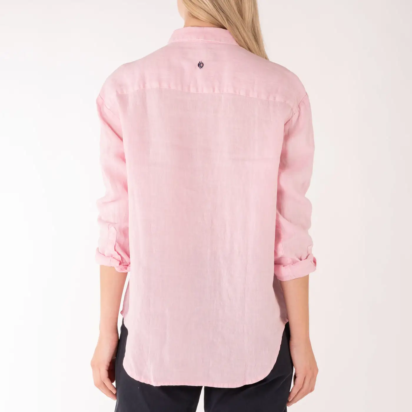 Lavet i blødt og køligt linned, i en afslappet løs pasform, er denne bluse perfekt til alle sommerens lejligheder. Skjorten er lidt længere bagpå med en buet kant.