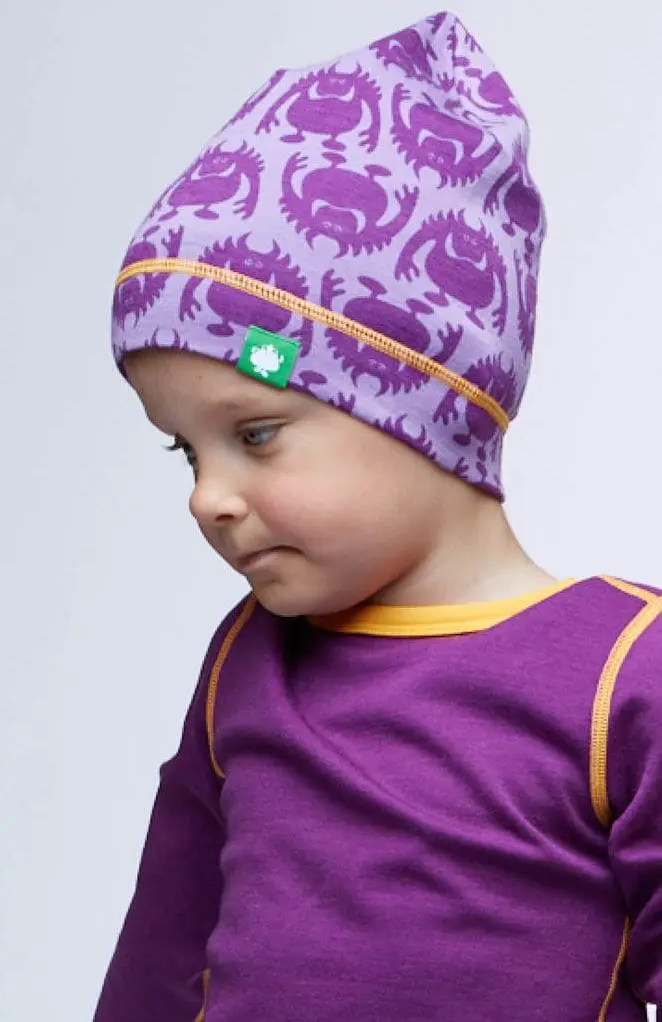 Monsteruldshat med det fantastiske monstermønster i stilrene farver. Monsteruld-serien viser, at monstre ikke kun er for drenge, men bringer monstret frem i alle små mennesker. Lua har superfin merinould på ydersiden og bomuld på indersiden, hvilket betyder at den ikke klør. Strikket i interlock, så huen holder godt på pasformen.