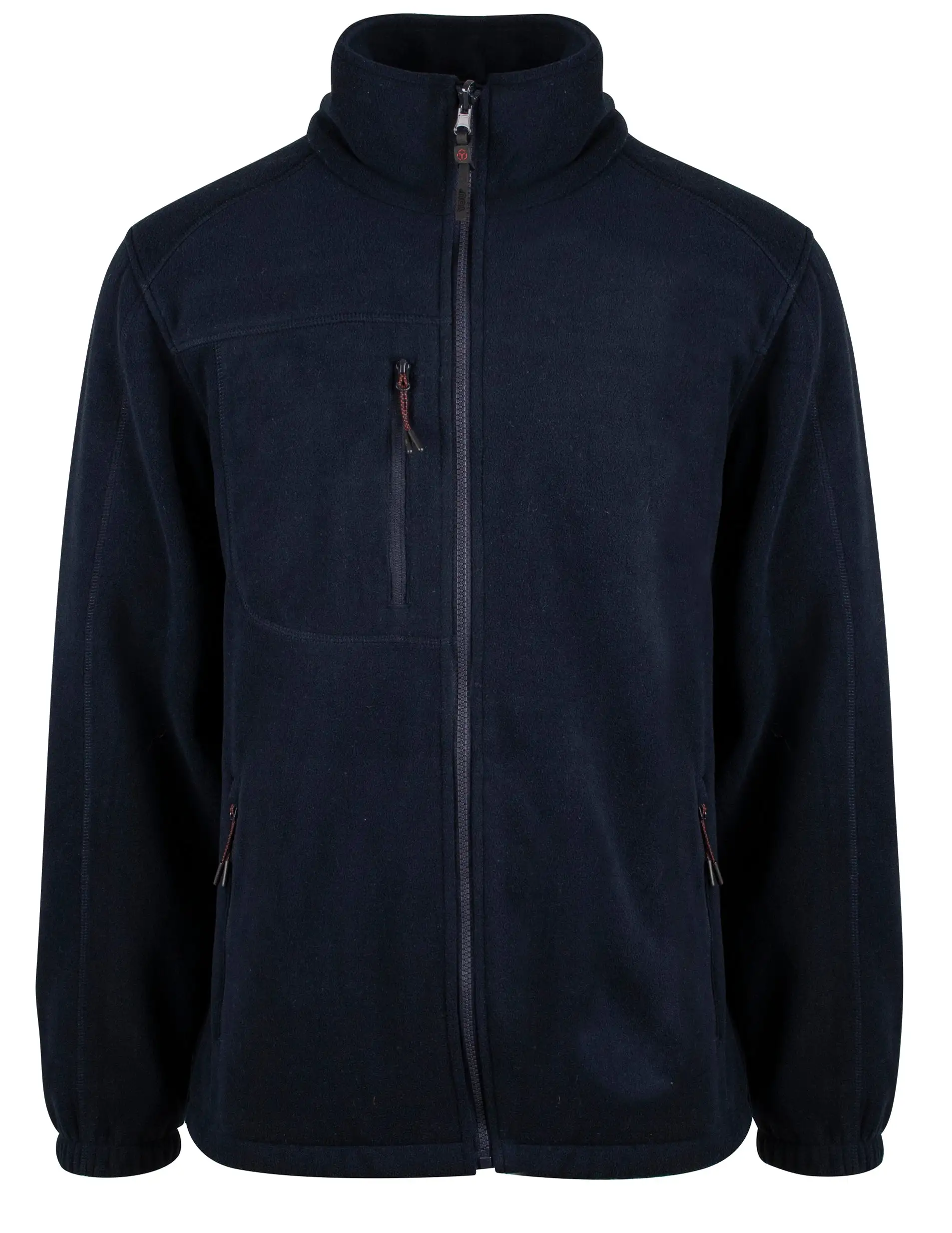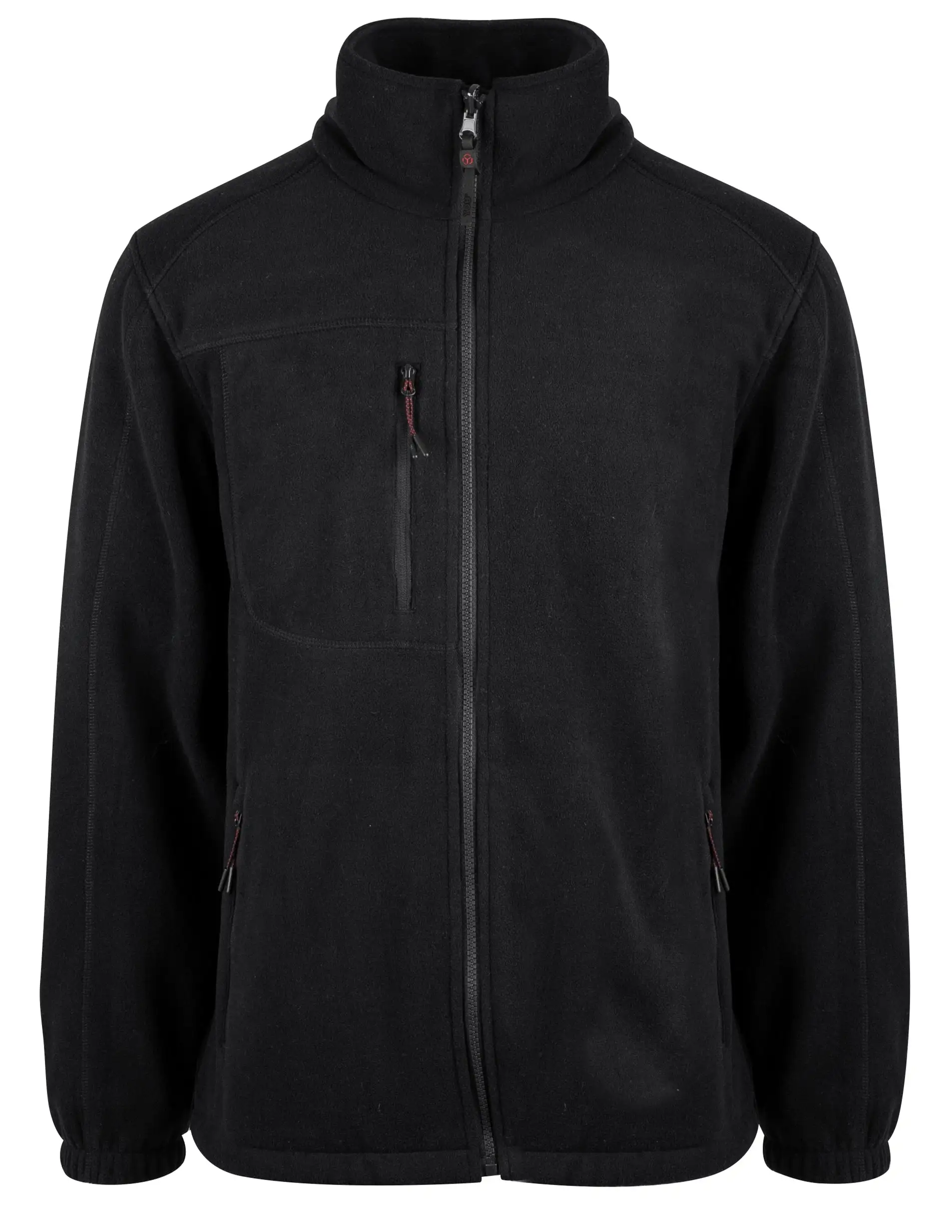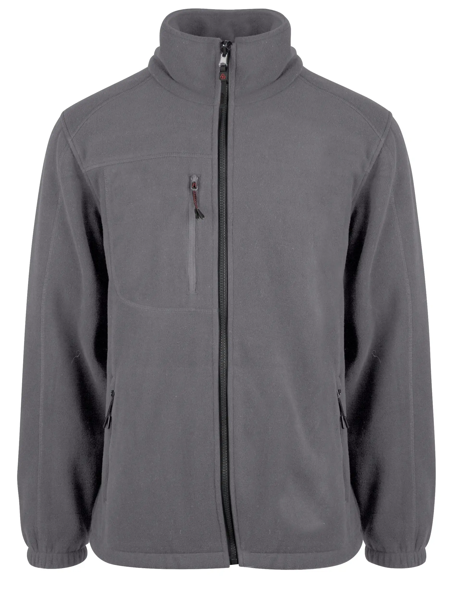 Unisex basic fleecejakke. Lynlås i front. Sidelommer og brystlomme med lynlås. To indvendige stiklommer. Flatlock/overlock sømme. Justerbare manchetter og justerbar linning.